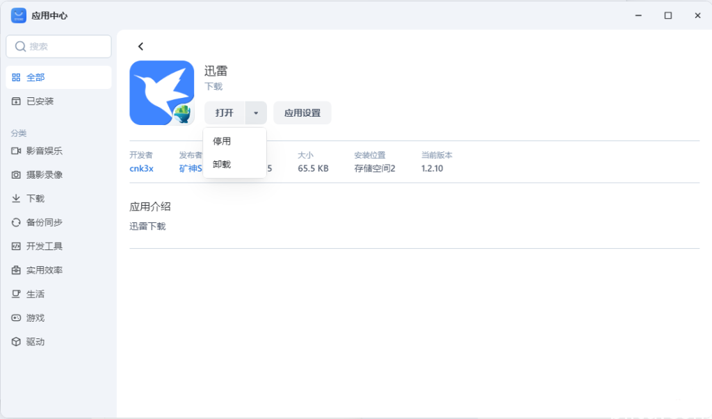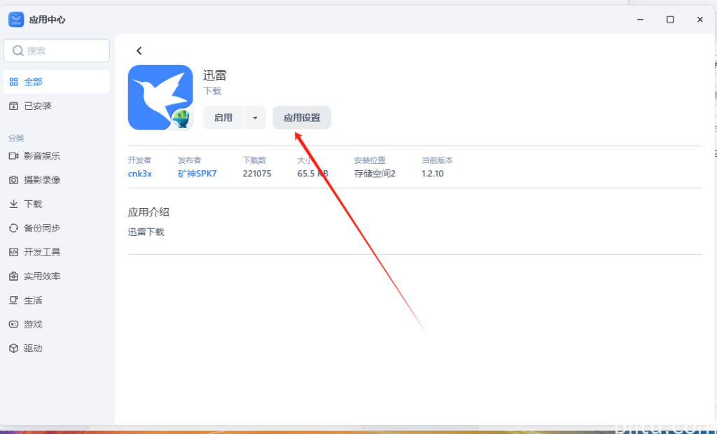 打开飞牛的应用中心,找到迅雷,点击应用设置。
