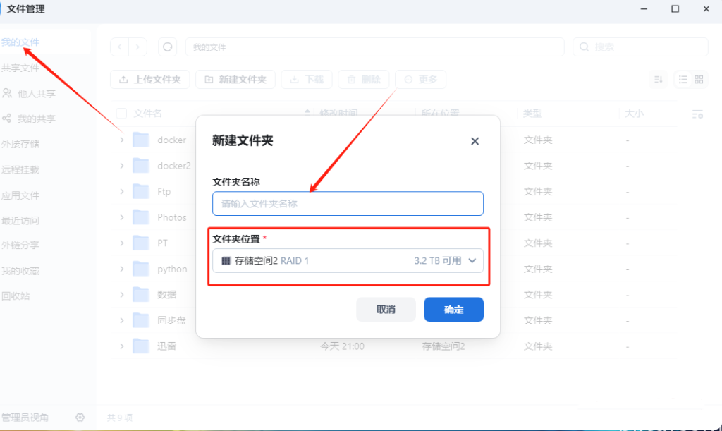 打开我的文件,新建一个用于保存迅雷下载文件的文件夹。文件夹位置选择存储空间。比如我这里设置的文件夹名称为迅雷。